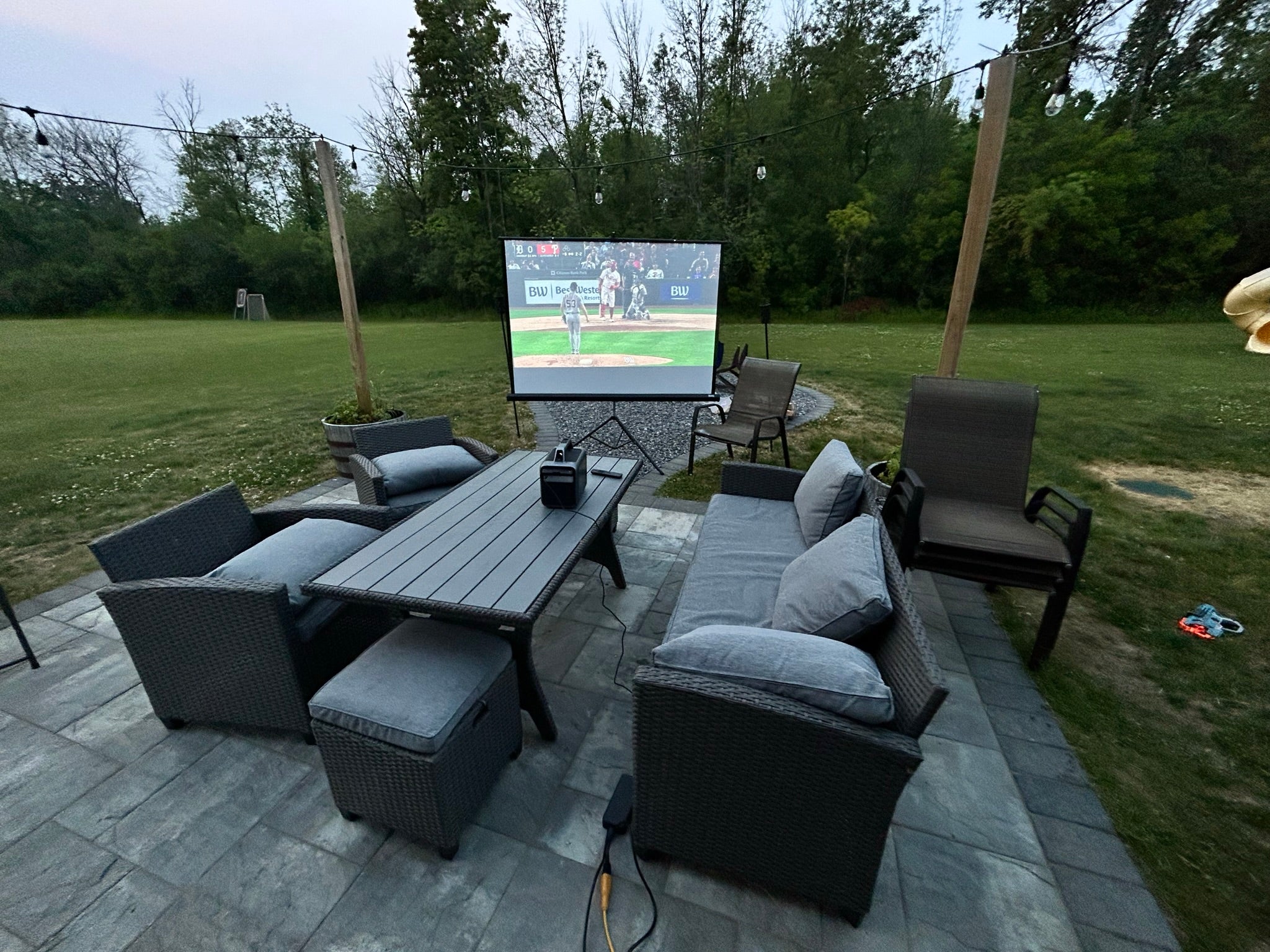 A #DateNight in the backyard courtesy of the soundcore Nebula Mars 3 paired with an Elite Screens Yardmaster Tab-Tension 120" screen.