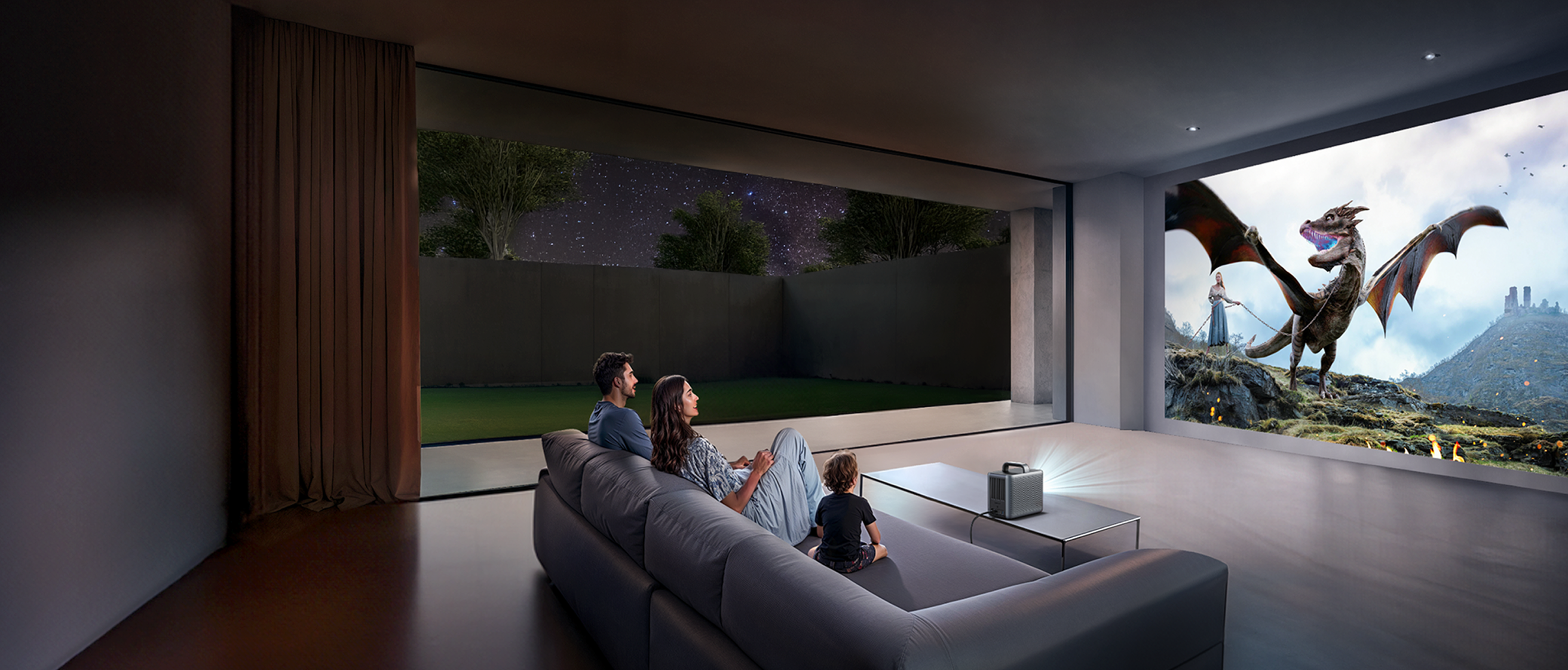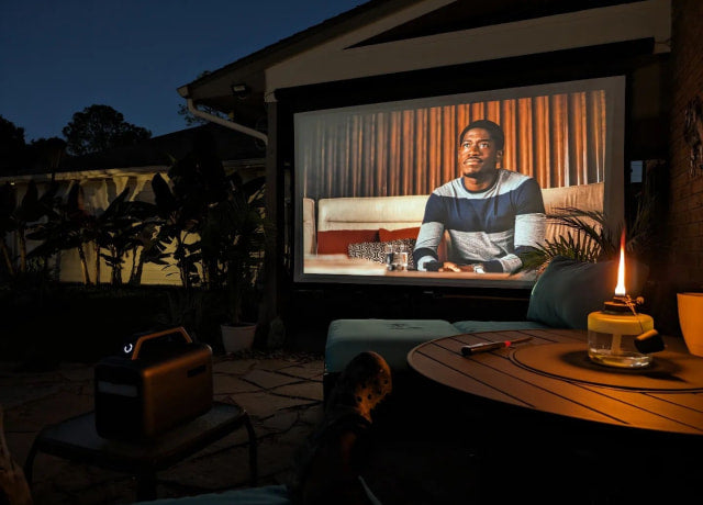 Epic cinema-scale projector screen at home or outdoors.
