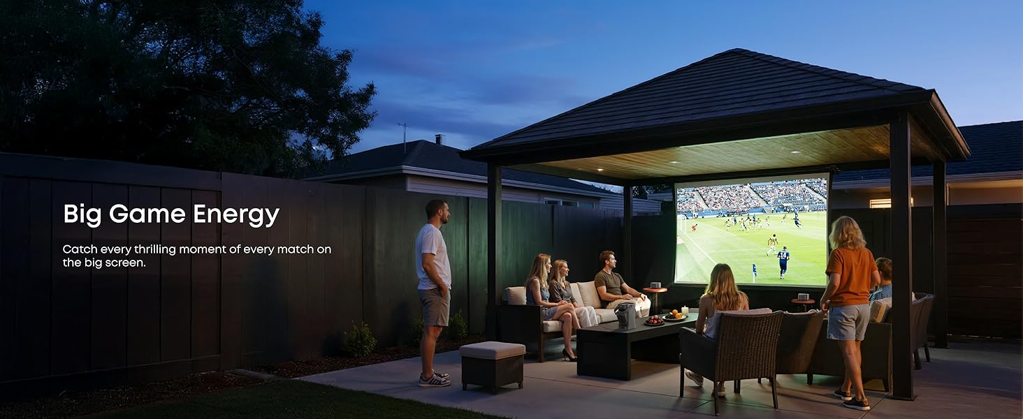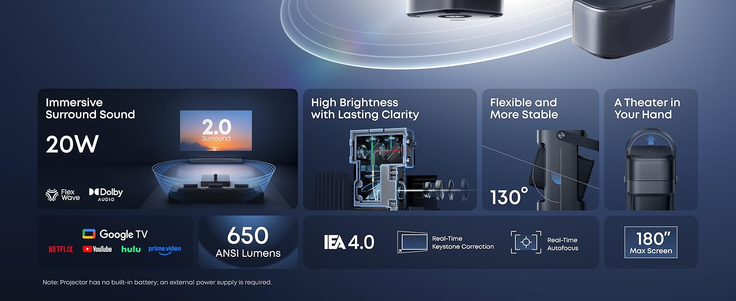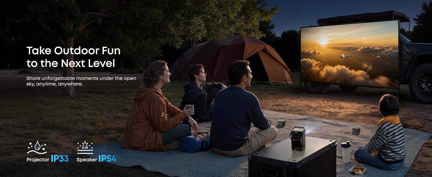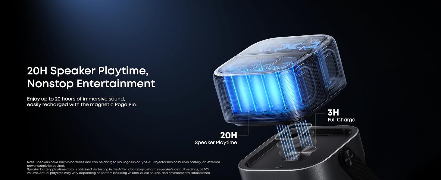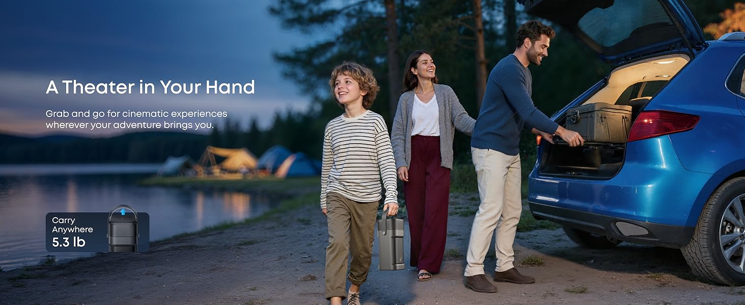 Compact Portable Design with Big Screen: Lightweight body with an integrated carry handle lets you take your entertainment anywhere. Enjoy a stunning 180"" max projection indoor or outdoor with up to 20 hours of speaker playtime.