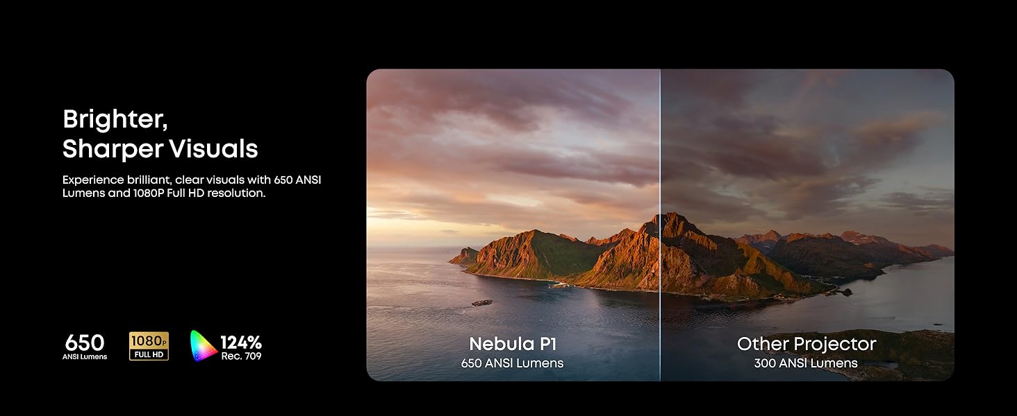 Exceptional Brightness and Lasting Clarity: Enjoy brilliant, clear visuals with 650 ANSI Lumens and 1080P Full HD resolution. Maintains consistently crystal-clear images over time.