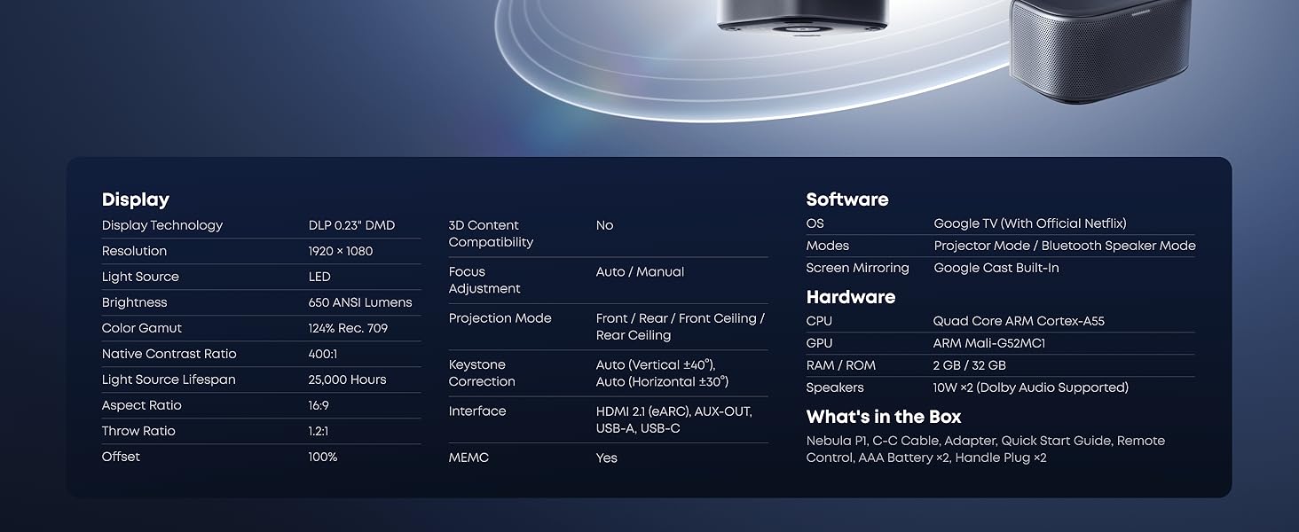 Nebula P1 | World's First Portable Projector with Detachable Speakers