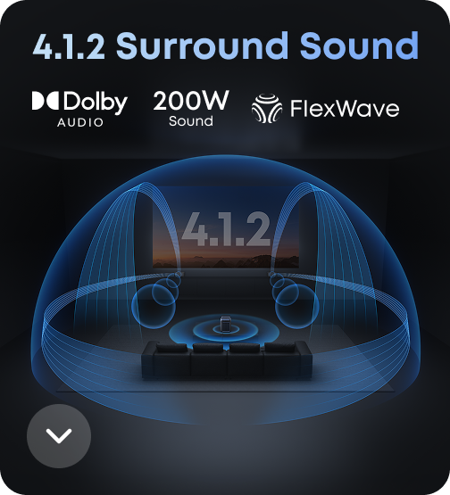 Experience real-life depth and cinematic immersion with 4.1.2 surround sound, utilizing the