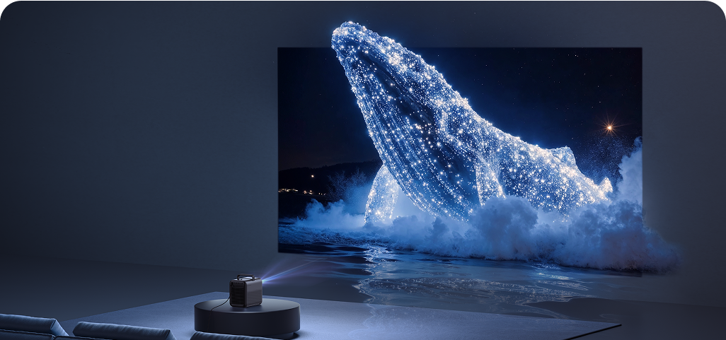 The first smart projector to feature a 14-element all-glass lens, delivering superior clarity, thermal stability, and long-lasting focus.